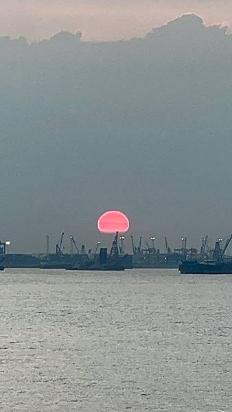 正當收拾行裝時,看見雲裡開始透紅,那一點慢慢擠出來成一個面,再成一個圓,太陽再由雲層穿出來,變得淡紅,燃燒我,燃燒我,燒至最後一秒,綻放最亮麗的紅射線,慢慢落在地平線上,這過程全紀錄在影片上,精彩萬分。已堪完美,沒有遺憾了。